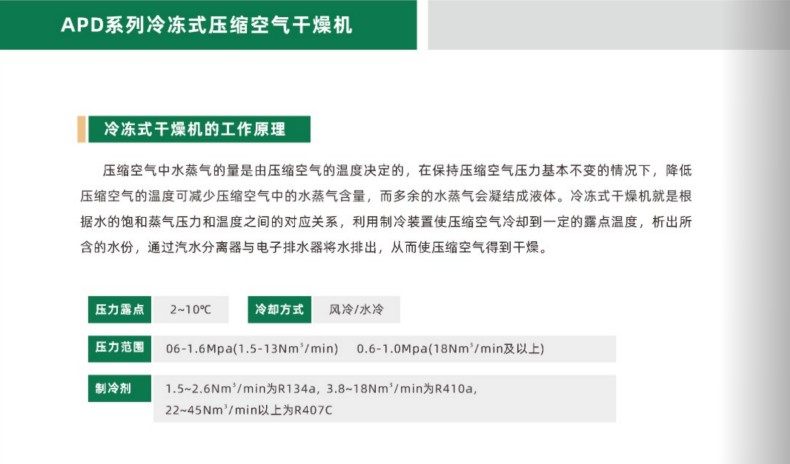 4、水冷式干燥机若冷却水质较差时,应在冷却水入口处加装水过滤器,冷却水温度在10~32℃较佳,水压应保持在0.15~0.35 bar之间。