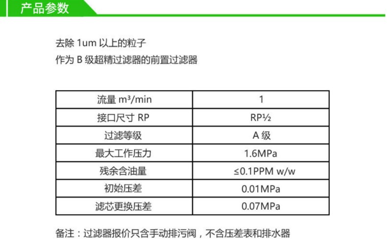 阿普达凝聚式过滤器采用欧洲领先技术,配备了压差显示计和自动排污阀,具有体积小,流量大,过滤效率高;容尘量大,压差损失小:耐腐蚀性能好,寿命长,滤芯更换方便等独特优点。各级过滤器均通过符合ISO8573标准的高效过滤器排气含油量测试仪器的检测。差异在毫厘之间,收获却有天壤之别。